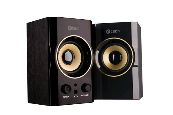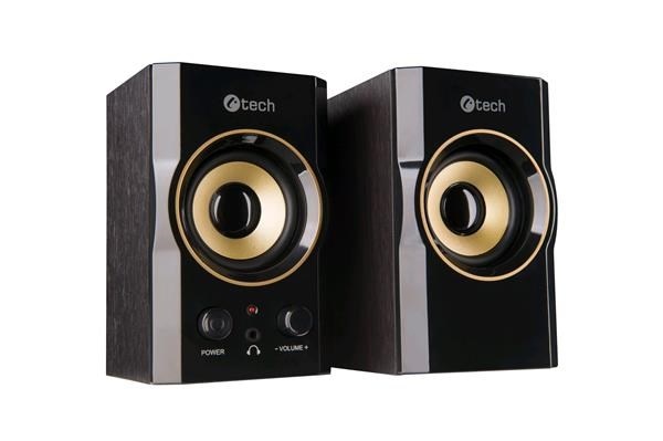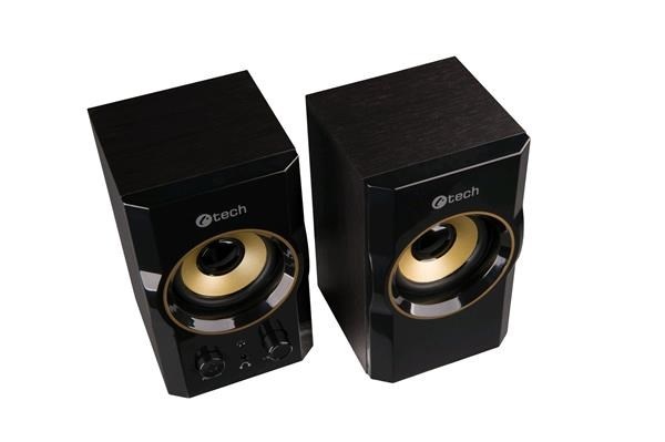 C-TECH repro SPK-11, 2.0, dřevěné, černo-zlaté, USB