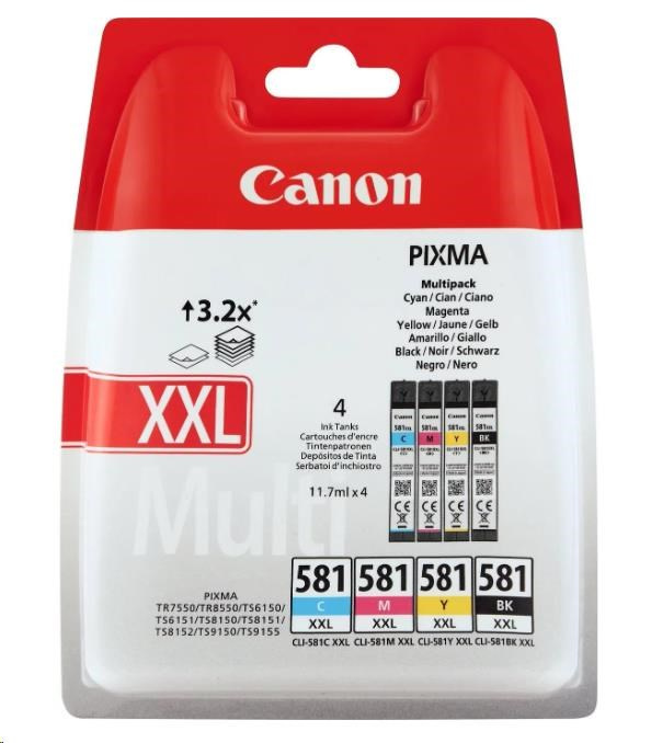 Canon CARTRIDGE CLI-581XXL C/M/Y/BK MultiPack pro PIXMA TS615x, TS625x, TS635x, TS815x, TS825x, TS8350 (600 str.)