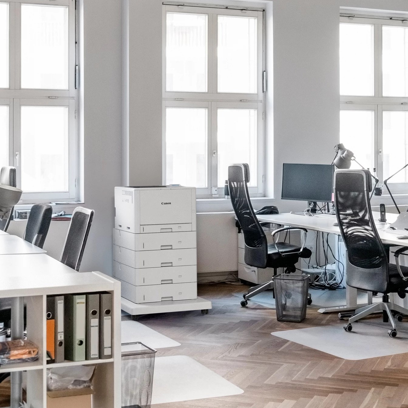 | Hmotnost | Hlavní jednotka: přibližně 37,3 kg Hlavní jednotka + 4× podavač papíru PF-L1 (Paper Feeder PF-L1) + plochý podstavec BA1 (Plain Pedestal BA1): přibližně 104 kg |