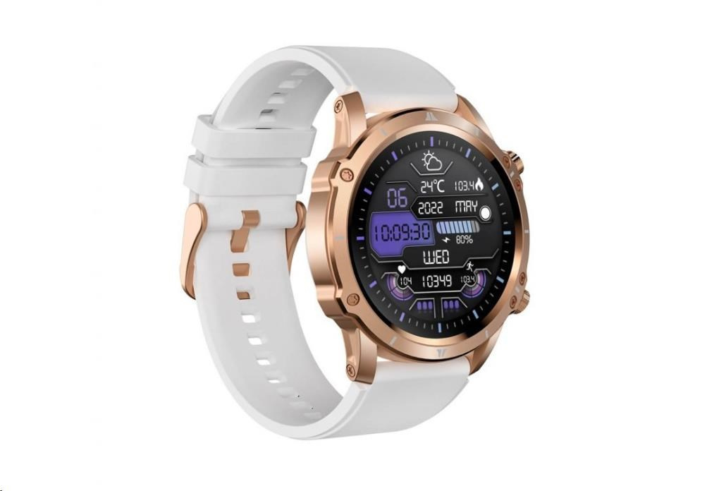 Moderní outdoorové fitness hodinky CARNEO ADVENTURE HR+ druhé generace v zlatorůžové barvě s bílým, na dotek velmi příjemným silikonovým řemínkem a barevným SUPER AMOLED displejem s vysokým jasem a funkcí trvalého zobrazení času monitorují vaši denní aktivitu, úroveň stresu, ale lze je spárovat s mobilním telefonem a upozornit vás na příchozí hovor nebo SMS. Hodinky umožňují telefonovat, aniž byste museli telefon vyndat z tašky, díky vestavěnému mikrofonu a reproduktoru až do vzdálenosti 10 m od telefonu. Jejich bezchybné kovové tělo s nadčasovými outdoorovými křivkami je tak návykové, že je po prvním nošení nebudete chtít sundat ze zápěstí. Extrémně odolné sklo Gorilla glass, ochrání jejich křišťálově čistý displej před poškrábáním.
