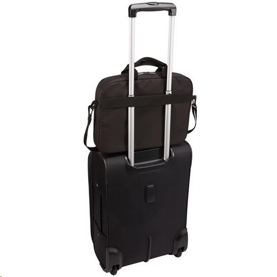 - Útlá kompaktní taška s polstrovaným úložným prostorem pro notebook do velikosti 14".