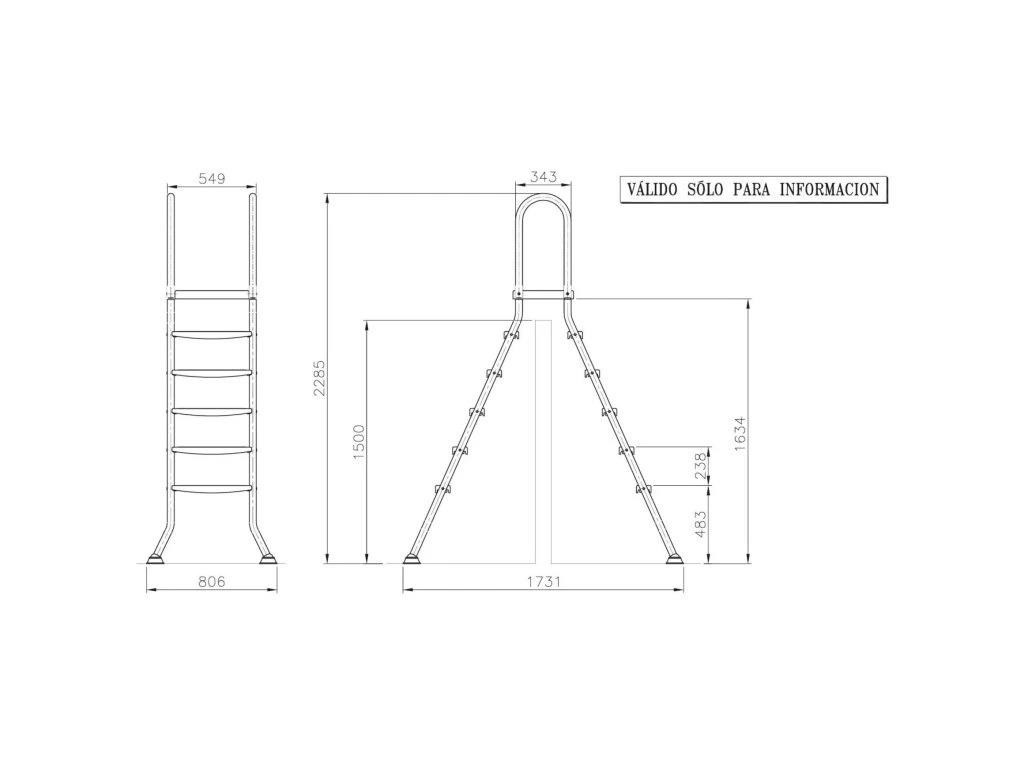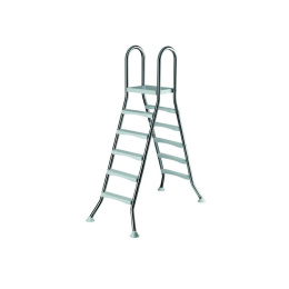 Bazénový žebřík pro bazény se stěnou až 150 cm, vyrobený z kvalitní nerezové oceli, která zajistí jeho dlouhou životnost. Žebřík má silné stabilní plastové schodnice a plošinu s protiskluzovou úpravou, udrží hmotnost až 150 kg. Žebřík má 5 stupně na vnitřní a vnější straně. Nohy žebříku jsou zakončeny koncovkami z protiskluzové gumy se stabilní podložkou, které zabraňují nechtěnému pohybu žebříku a zvyšují tak bezpečnost. Zároveň zabraňují poškození vašeho bazénu.