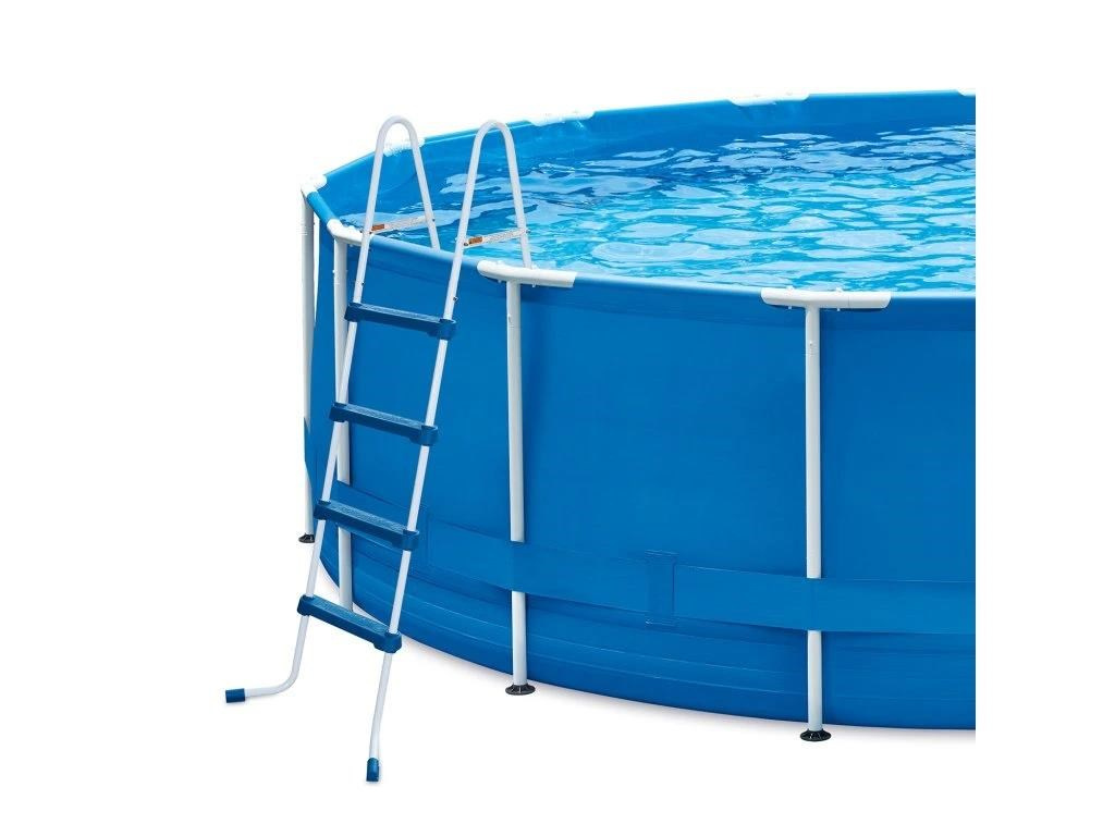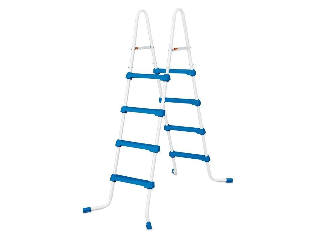 Bazénové schůdky 122 cm pro nadzemní bazény mají kovový rám a plastové stupně s bezpečnostním protiskluzným povrchem. Vysokou nosností až 150 kg. Jsou vyrobeny z vysoce kvalitních ocelových trubek s lakovanou povrchovou úpravou, vyznačují se proto velmi dlouhou životností. Díky lehké konstrukci pohodlně vložíte či vyjmete z bazénu.