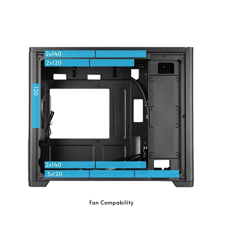 CHIEFTEC BX-MESH je moderní, kompaktní mini věž, která kombinuje elegantní design s vysokou funkčností a snadnou instalací pro výkonný systém. Díky kompatibilitě se standardním zdrojem ATX, deskami m-ATX a grafickými kartami do maximální délky 380 mm a celkem 6 možným instalovaným ventilátorům by moderní konfigurace neměly mít s instalací do BX-10B-M-OP žádné problémy z hlediska prostoru ani chlazení.