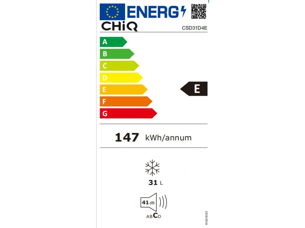 Přidat do oblíbenýchCHiQ CSD31D4E minibar, 31 litrů, 2 přihrádky, -24 °C až +10 °C, mrazák - lednice, 41 dB