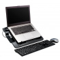 The ERGOSTAND III is an ergonomic laptop cooling stand that will make using your laptop fun and uplift your business productivity. A large 230mm ultra silent fan with all new Loop Dynamic Bearing and exclusive fan blade design provides better air dissipation, ultra low noise, and longer lifespan to increase laptop performance. Removable front plate enables quick cleaning to sustain high performance. 6 Ergonomic height settings let you quickly choose the ideal angle to relieve neck and shoulder pain. Grooves and hooks keep wires clean and tidy while the USB hub expands one laptop port into four (4). Compatible with 17” laptops and tablets by adjustable anti-slip holders.