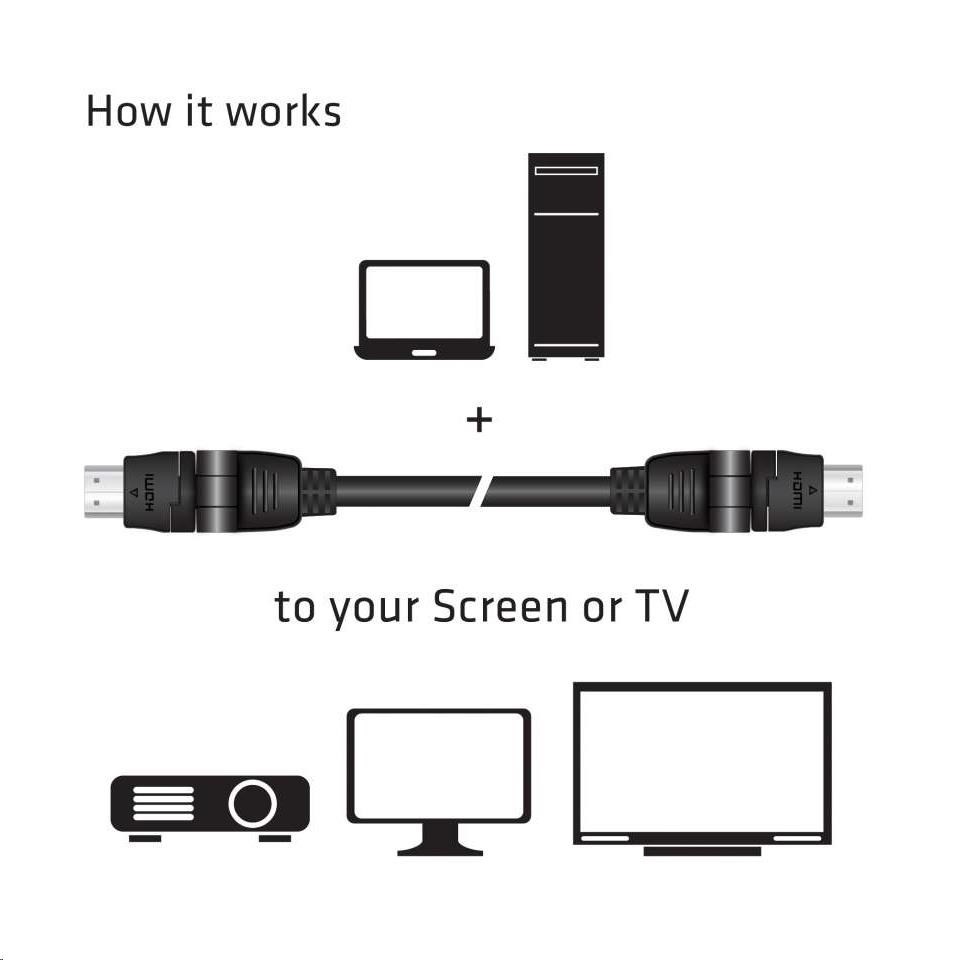 Club-3D HDMI™ 2.0 4K60Hz UHD 360° Rotary Cable 2M/6.56ft Male/Male
