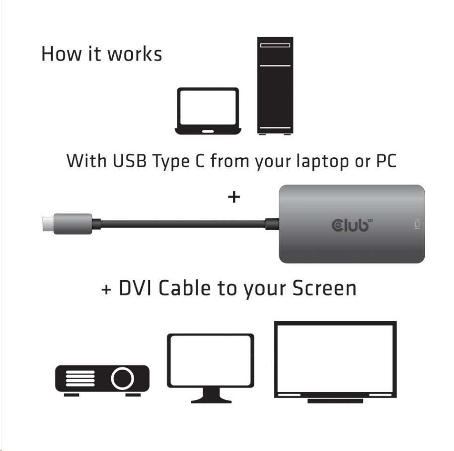 | Club 3D USB Type C to Dual Link DVI-I Active Adapter |
