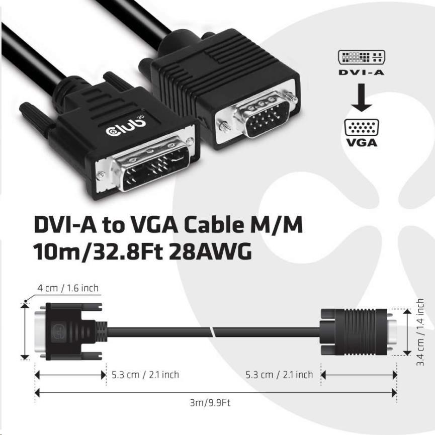 Club3D kabel DVI-A na VGA, 3m, 28 AWG