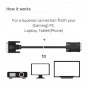 Please use one of our VGA / DVI (Extension/Adapter) cables to connect to your devices: In case you need assistance to choose the correct cable, please visit our website www.club-3d.com or feel free to mail us at support@club-3d.com and it will be our pleasure to assist you.