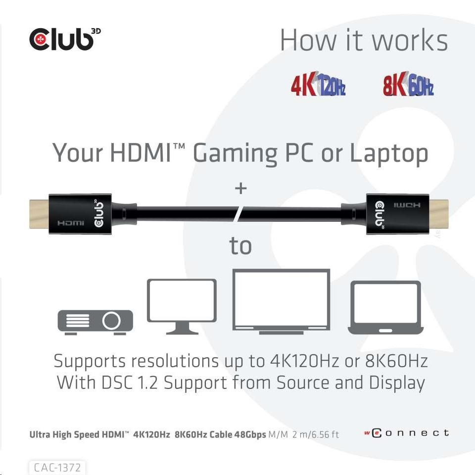 The Club 3D CAC-1372 Ultra High Speed HDMI™2.1 Certified Cable is built to handle the highest quality video- and audio- signals.
