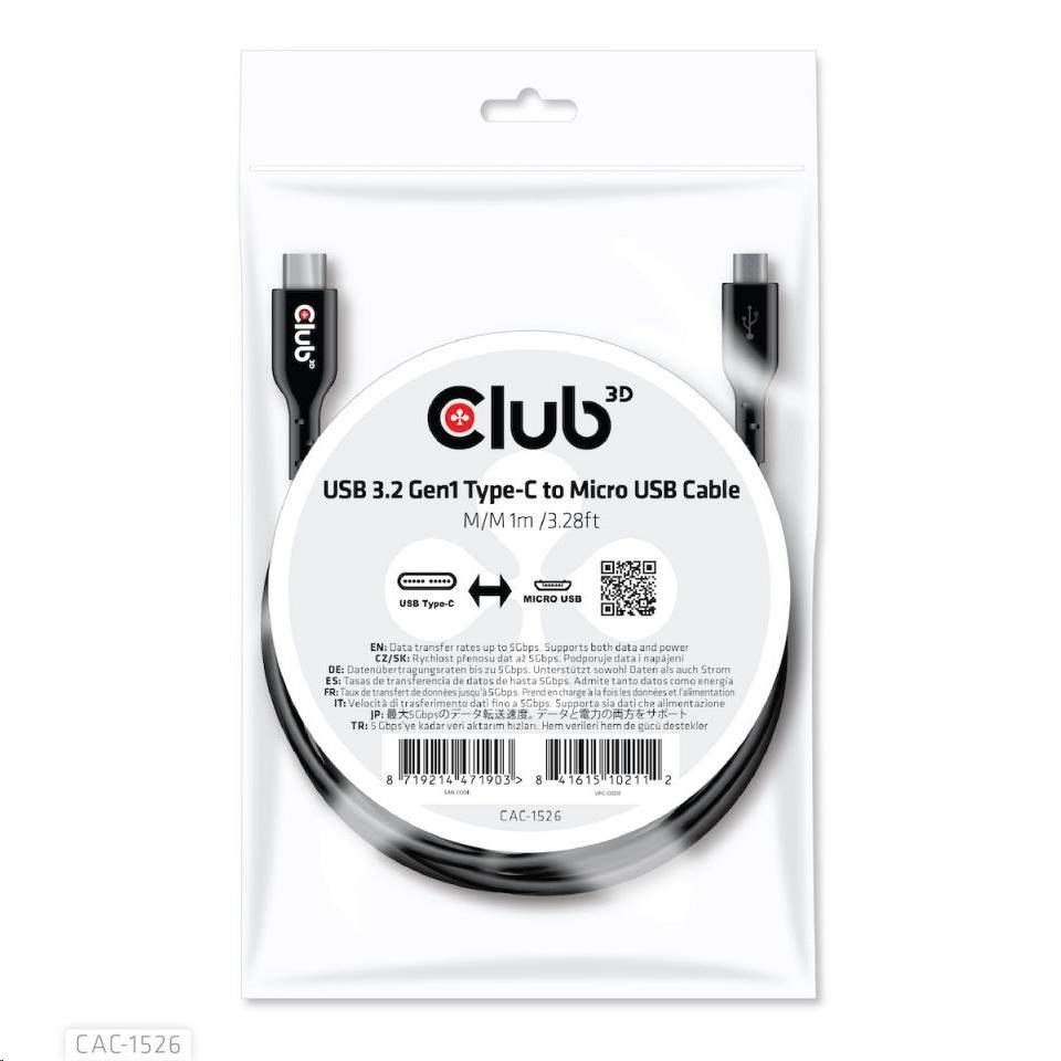 Club3D Kabel USB 3.2 Gen1 Type C na Micro USB Cable (M/M), Bidirectional, 1m