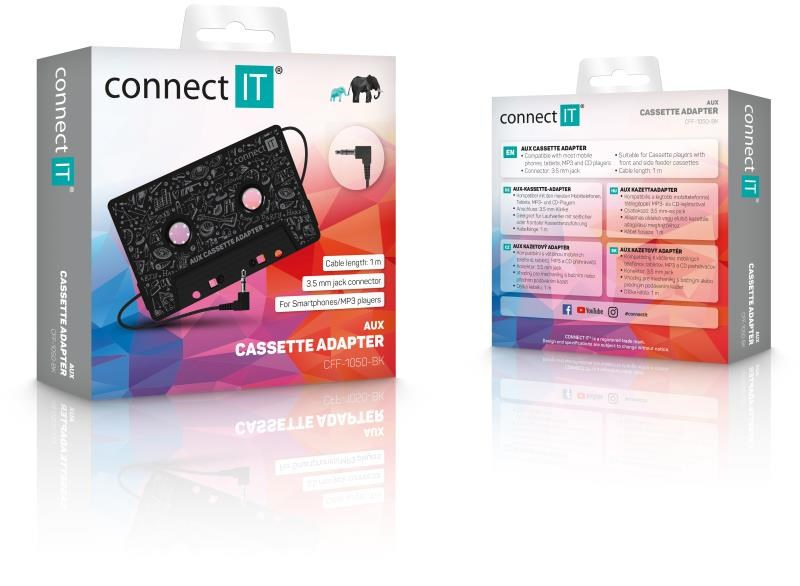 CONNECT IT AUX kazetový adaptér, 3,5 mm jack, černá