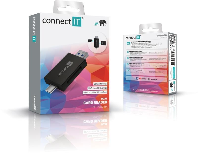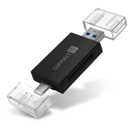 Praktická externí čtečka paměťových karet s konektory USB-A 3.0 a USB-C Dual Gear umožňuje kdekoliv přenášet obsah mezi vašimi paměťovými kartami a počítačem. Používá (zpětně kompatibilní) vysokorychlostní rozhraní USB 3.0, díky němuž je zajištěn bezproblémový a bleskový přenos dat mezi zařízeními. Čtečka má tvar flashdisku, takže ji lze snadno přepravovat a vzít si ji třeba i na cesty. Potěší i praktické krytky USB konektorů, které zabraňuje vniknutí nečistot a prachu, čímž předchází jakýmkoliv problémům. Přenosová rychlost 5 Gbps