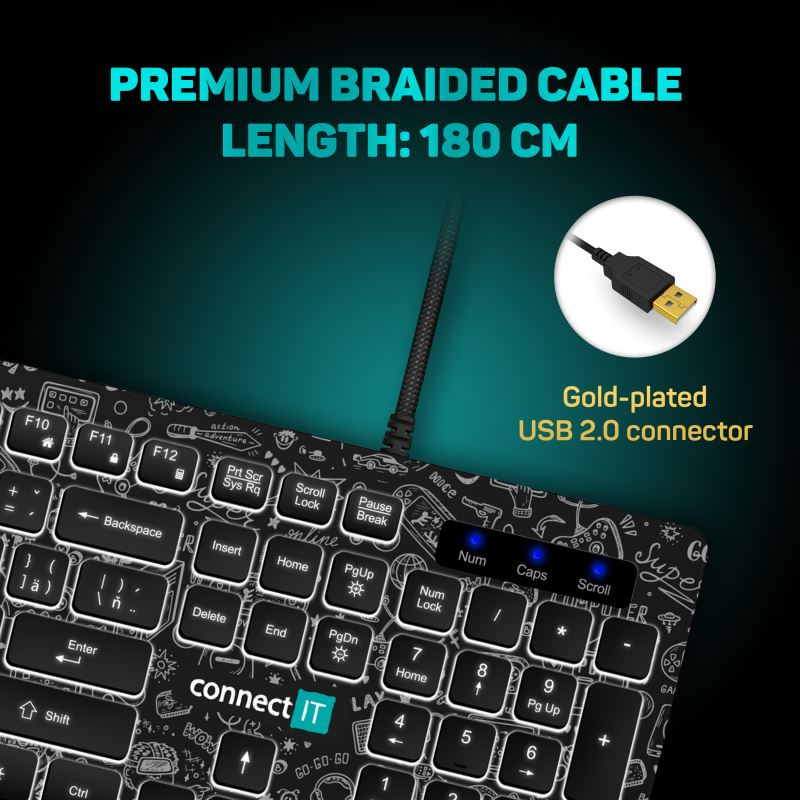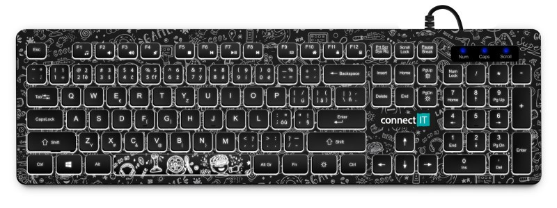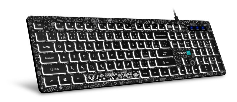 CONNECT IT DOODLE kancelářská drátová bíle podsvícená USB klávesnice, CZ + SK verze, ČERNÁ
