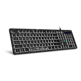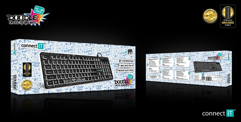 Podsvícená klávesnice s unikátním DOODLE motivem, určena pro domácí použití i pro vysoko zátěžové profesionální použití v kancelářích a firmách.