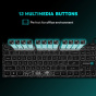 Klávesnice kromě klasických funkcí disponuje 12 multimediálními klávesami, které se obzvláště hodí do kancelářského prostředí. Její bílé podsvícení vám umožní pracovat i v pozdních hodinách při nízkém osvětlení. Příjemný ergonomický náklon klávesnice pomáhá proti únavě zápěstí během dlouhých pracovních relacích.