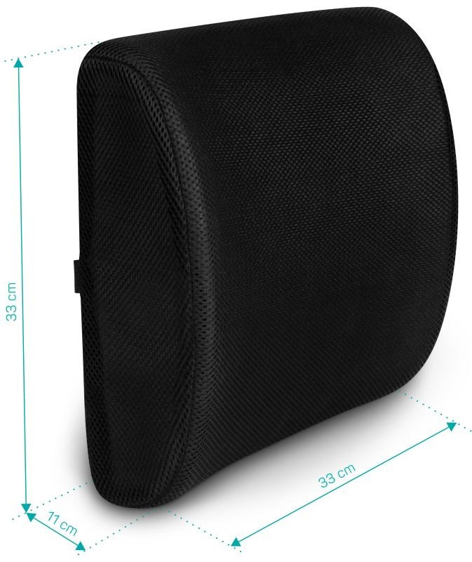 Bederní opěrka na židli s ergonomickým designem pro maximální pohodlí a podporu bederní části zad. Univerzální provedení pro použití na kancelářských a herních židlích, sedadlech v autě, sedaček, invalidních vozíků a jiné.