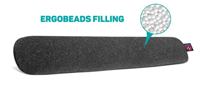 Zápěstní opěrka před klávesnici plněná kuličkami ErgoBeads, díky kterým se opěrka vytvaruje a přizpůsobí každému zápěstí a zajistí tak celodenní komfort při práci na PC.