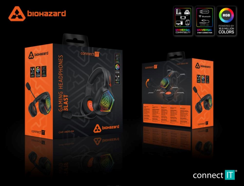 CONNECT IT Herní sluchátka s mikrofonem BIOHAZARD Blast, Bezdrátové RF 2.4GHz a Bluetooth, černá