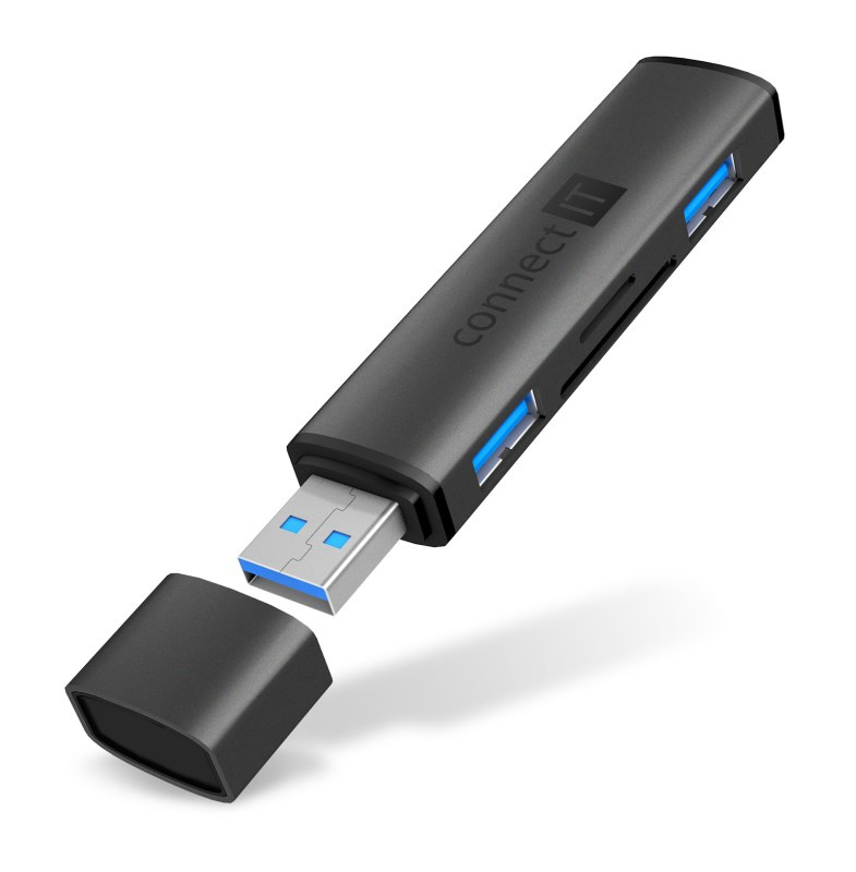 CONNECT IT Hub Compact 4v1, 2xUSB 3.0, 1xSD, 1xMicroSD, externí, černá