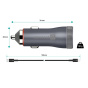 Díky této ojedinělé kombinaci portů, lze nabíjet zařízení jak s Lightning vstupem, tak USB-C vstupem jedním univerzálním kabelem, který je dodávaný v balení. Nabíječka je určená pro napájení i nabíjení mobilních telefonů, tabletů, power bank, akčních kamer, navigací, kamer do auta, elektronických čteček knih a mnoha dalších přenosných zařízení. Technologie Power Delivery (PD) umožňuje rychlonabíjení o výkonu 30 W. Nechybí ani modrá LED kontrolka signalizující správné zasunutí nabíječky v autozásuvce. Součástí balení je i velice kvalitní kabel Lightning -> USB-C, který dokáže přenést až 27 W.