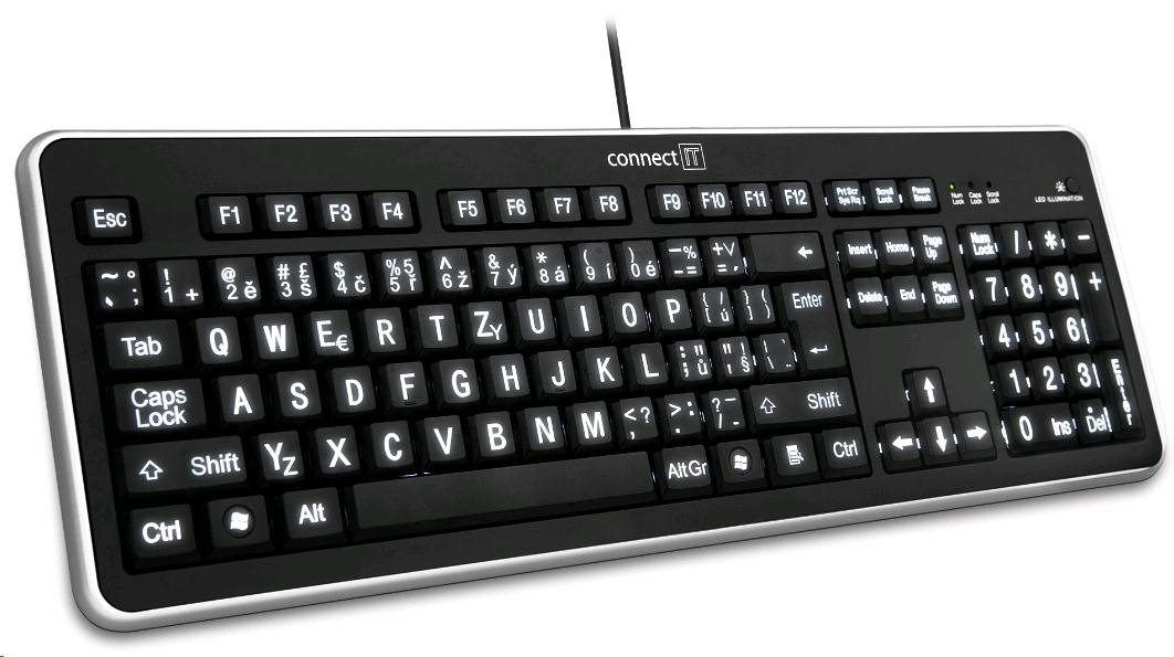 CONNECT IT Klávesnice CI-71 s LED podsvícením a VELKÝM fontem, USB
