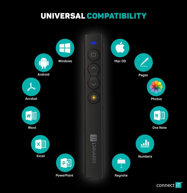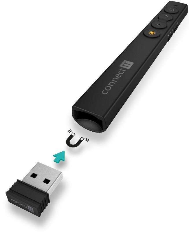 - Úložný prostor ve spodní části prezentéru pro mini USB přijímač ideální při transportu i cestování