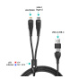Univerzální nabíjecí kabel 4v1 pro nabíjení zařízení s konektory 1x USB-C a 1x Lightning se vstupním konektrom USB-C a redukcí na USB-A. Umožňuje nabíjení až dvou zařízení současně s podporou rychlého nabíjení pomocí max. proudového toku 5 A. Speciální manžetová nadstavba konektorů zaručuje lepší přístupnost k nabíjecím zdířkám mobilních telefonů v pouzdrech.