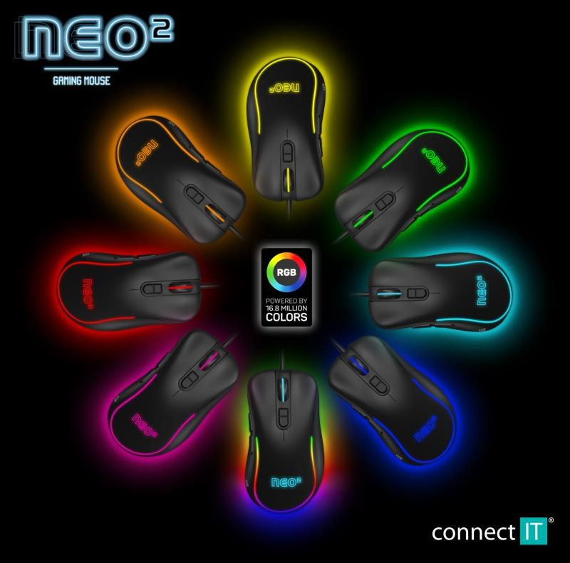 CONNECT IT NEO 2 herní myš+SW, 7200 DPI, černá