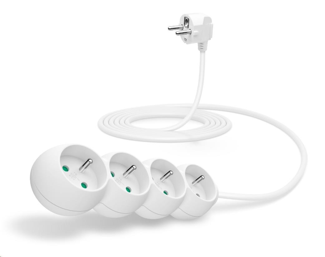 Prodlužovací kabelový přívod na 230V je vybaven dětskou ochranou všech zásuvek – zásuvky jsou přístupné pouze v případě zasunutí obou vidlic najednou, nelze tedy zasunout jednotlivě např. pouze šroubovák nebo pletací jehlici.