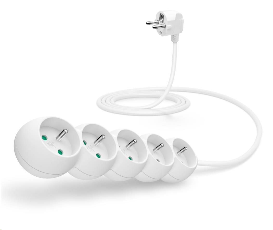 CONNECT IT prodlužovací kabel 230V, 5 zásuvek, 2 m, bez vypínače (bílý)