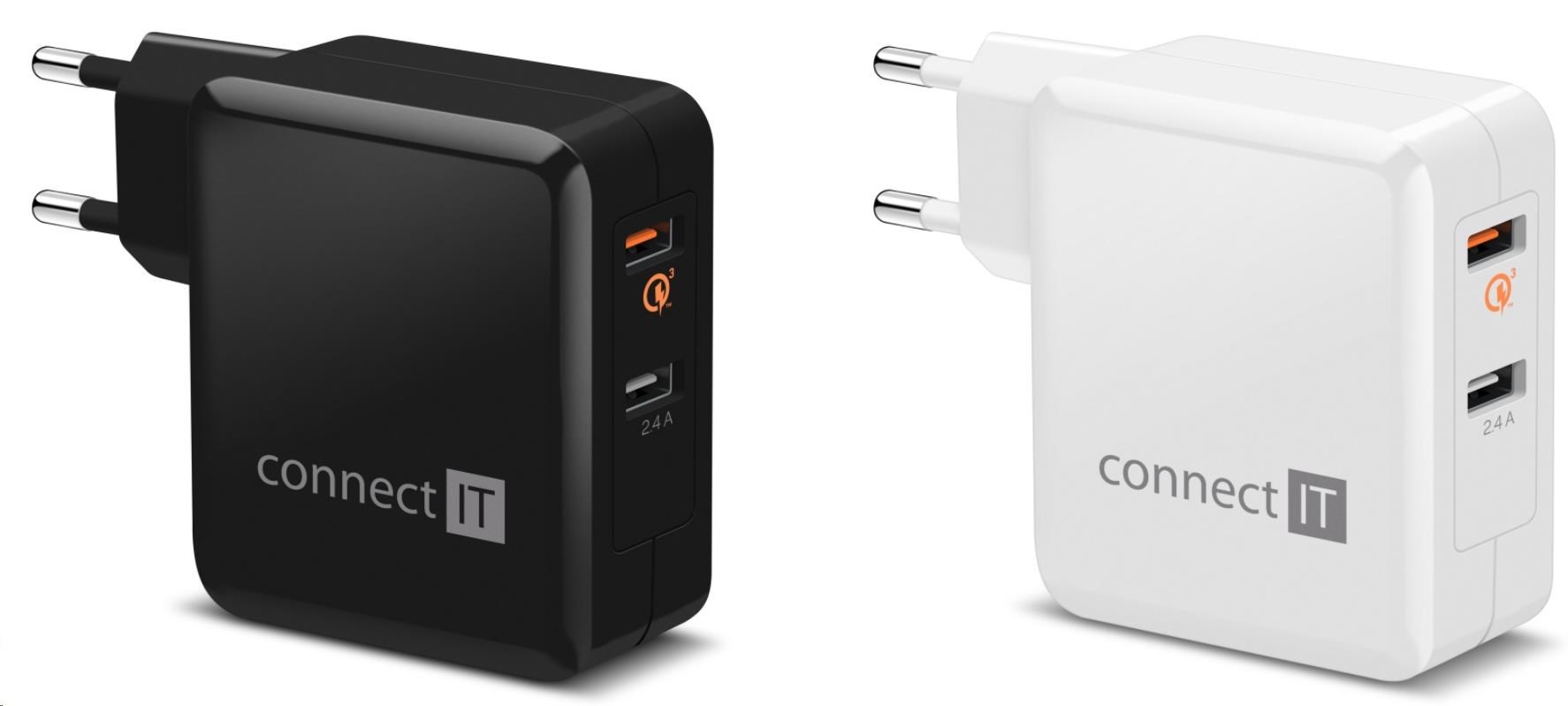 CONNECT IT QUICK CHARGE 3.0 nabíjecí adaptér 2x USB (3,4A), QC 3.0, černý