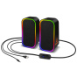 Reproduktory jsou vybaveny RGB Rainbow podsvícením a ovládáním hlasitosti/podsvícení/vstupu na kabelu.