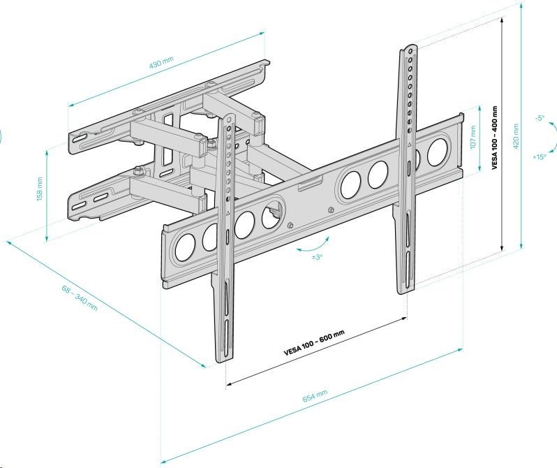 Nastavení do požadovaného úhlu nevyžaduje povolení ani opětovné utažení šroubů (stačí pouze uchopit okraje TV a nastavit úhel)