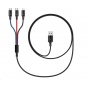 Speciální prémiový nylonový oplet garantuje vysokou ohebnost a životnost. Barevné rozlišení větví konektorů usnadňuje a urychluje používání. Všechny konektrory jsou uzavřeny v pevném pouzdře z leteckého hliníku. Kvalitní materiál žil o dostatečném celkovém průřezu umožňuje rychlé nabíjení.