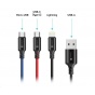 Univerzální nabíjecí kabel 3v1 na nabíjení zařízení s konektory Micro USB, Lightning a USB-C (Type C) umožňuje nabíjení až tří zařízení současně s podporou rychlého nabíjení pomocí max. proudového toku 2 A. Speciální manžetová nadstavba konektorů Micro USB, Lightning i USB-C (Type C) zaručuje lepší přístupnost k nabíjecím zdířkám mobilních telefonů v pouzdrech.