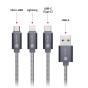 Univerzální nabíjecí kabel 3v1 na nabíjení zařízení s konektory Micro USB, Lightning a USB-C (Type C) umožňuje nabíjení až tří zařízení současně s podporou rychlého nabíjení pomocí max. proudového toku 2 A