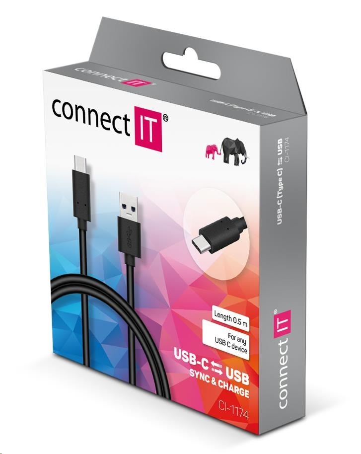 CONNECT IT Wirez USB-C (Type C) -> USB-A, USB 3.1 Gen 1, černý, 0,5 m