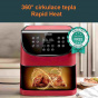 Horký vzduch rotuje kolem jídla ze všech stran a tím dosahuje kvalitního a rovnoměrného propečení a uvaření pokrmů. Díky této technologii se fritéza předehřeje během pouhých 5 minut.