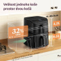 Turbo Tower nabízí řešení problému s místem. Fritéza zabírá minimální prostor, ale nabízí celkový objem téměř 11 litrů. Můžete tak najednou připravit oběd pro celou rodinu, hromadu hranolek pro filmový maraton nebo speciality na party. Malý prostor nevadí, Cosori to vyřeší s rozměry 40,5 x 30 x 41,3 cm (V x Š x H).