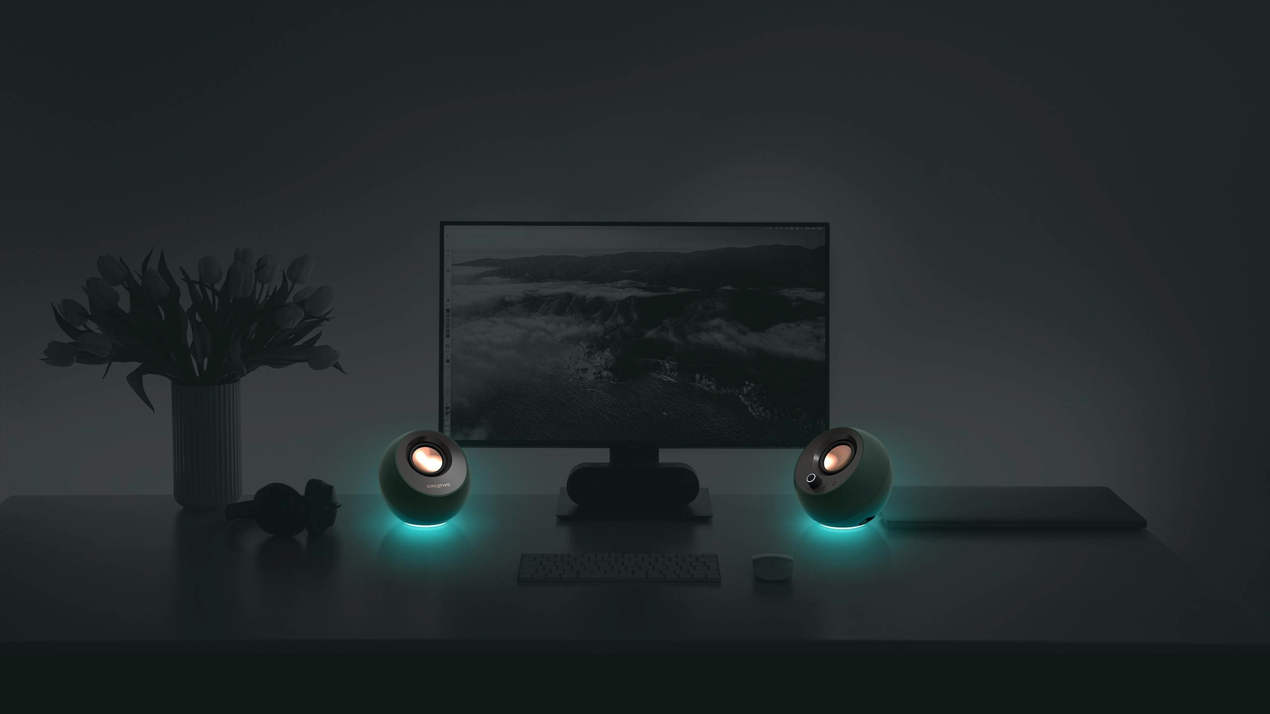 Nyní s nastavitelným osvětlením RGB! Reproduktory Creative Pebble Pro umožňují výběr ze širokého spektra barev a tří světelných efektů pomocí jednoduchého nastavení typu plug-and-play.
