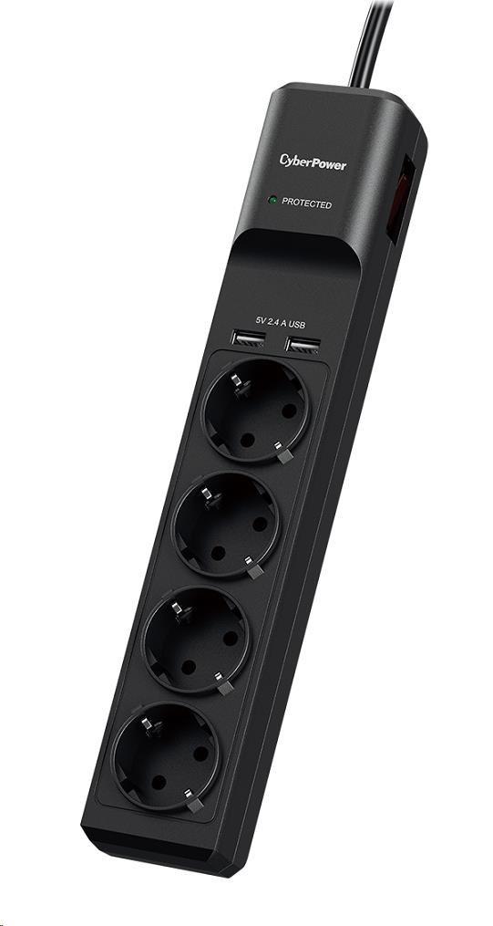 CyberPower Surge Buster™ 4 zásuvky, 2xUSB, 1.8m, German, New