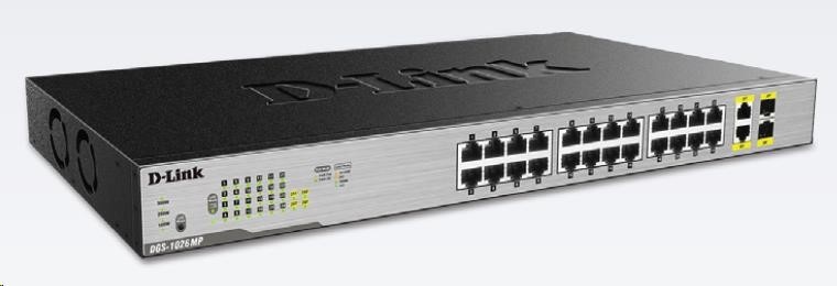 D-Link DGS-1026MP 26-Port Gigabit PoE Switch, 24x gigabit PoE RJ45, 2x gigabit RJ45/SFP, PoE budget 370W