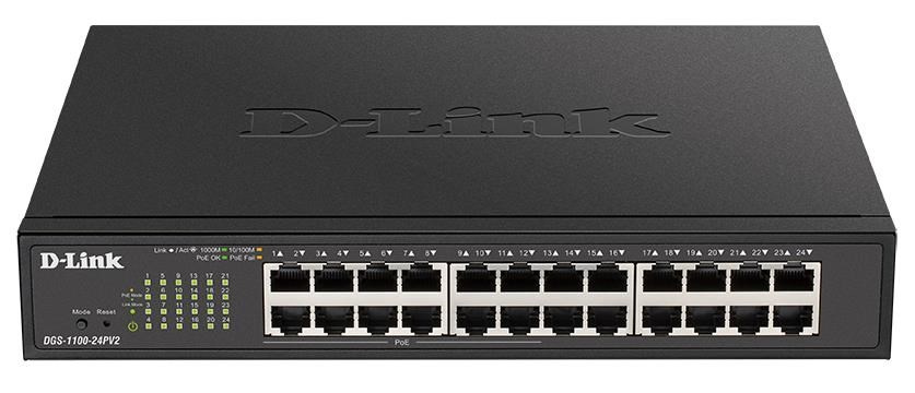 D-Link DGS-1100-24PV2 24-Port PoE Gigabit Smart Managed Switch, 12x PoE, PoE budget 100W, fanless