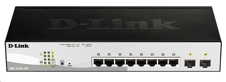 D-Link DGS-1210-10P 10-port Gigabit Smart+ PoE Switch, 8x GbE PoE+, 2x SFP, PoE 65W, fanless