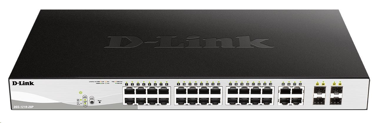 D-Link DGS-1210-28P 28-port Gigabit Smart+ PoE Switch, 24x GbE PoE+, 4x RJ45/SFP, PoE 193W