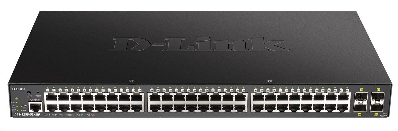 D-Link DGS-1250-52XMP 52-Port Gigabit Smart PoE Switch, 48x GbE PoE+, 4x SFP+, PoE 370W