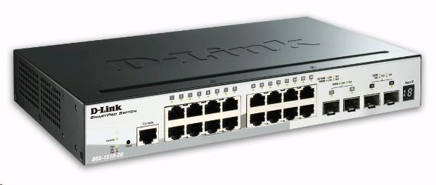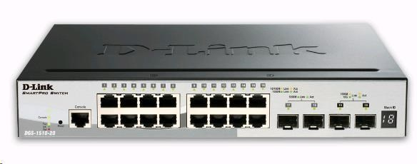 D-Link DGS-1510-20 20-Port Gigabit Stackable SmartPro Switch, 16x gigabit RJ45, 2x 10G SFP+ port, 2x SFP port