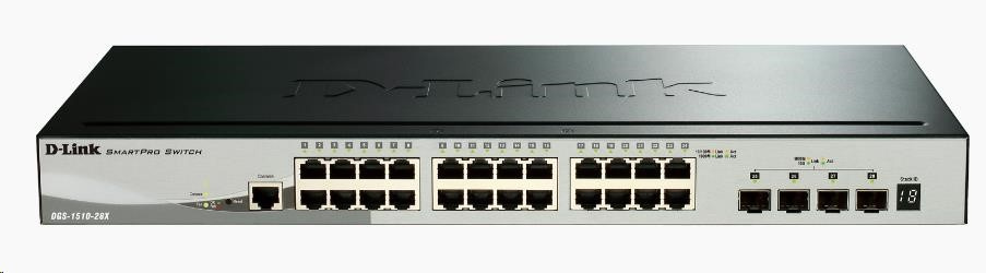 D-Link DGS-1510-28X 28-Port Gigabit Stackable Smart Managed Switch, 24x gigabit RJ45, 4x 10G SFP+